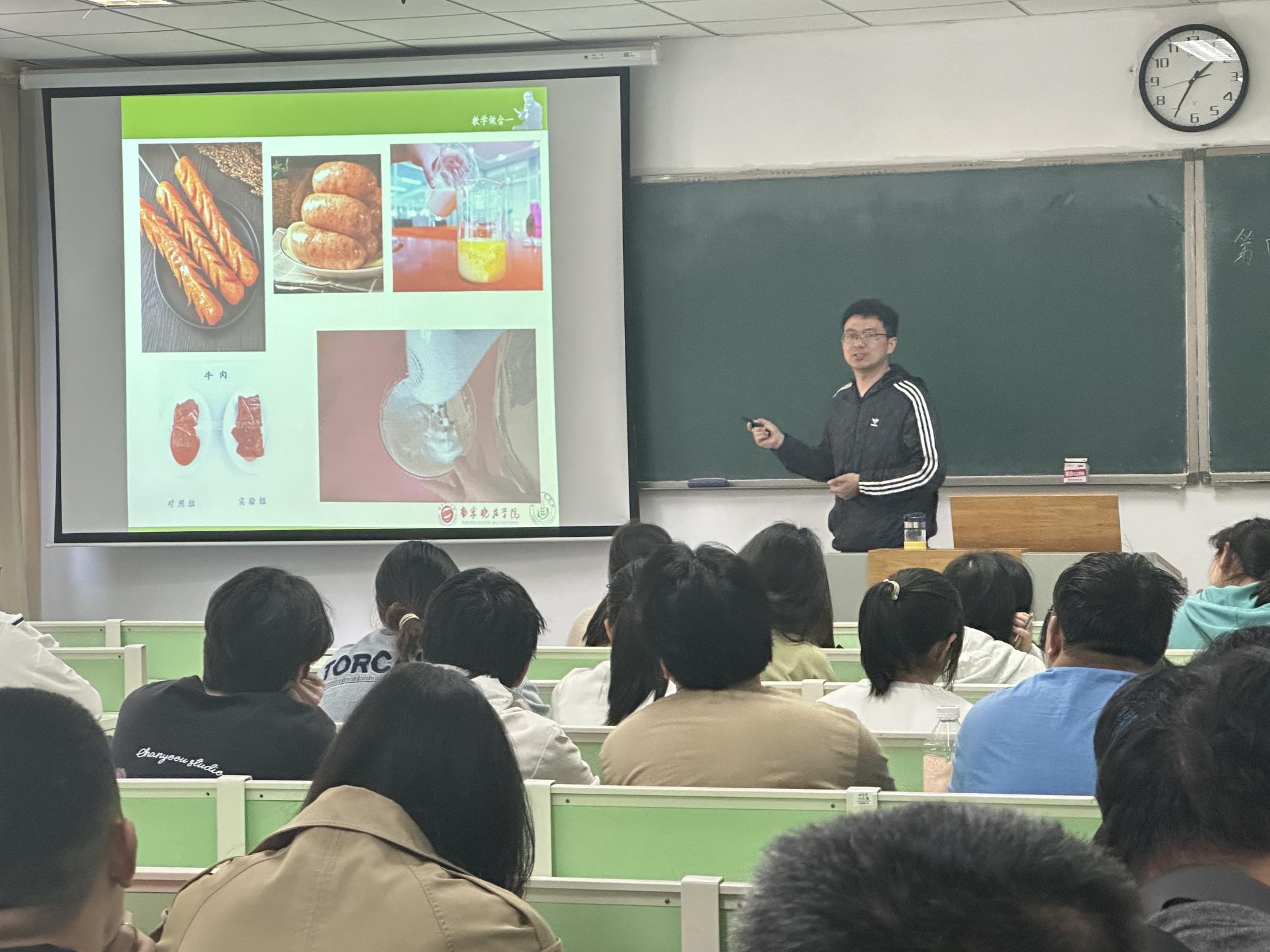首场示范课由张伟副教授主讲。他以“蛋白质功能性质”为主题,通过动态分子结构模拟动画,生动阐释蛋白质凝胶化过程。课程同步引入核心期刊最新研究成果,实现了抽象理论可视化、前沿科研教学化的创新突破。