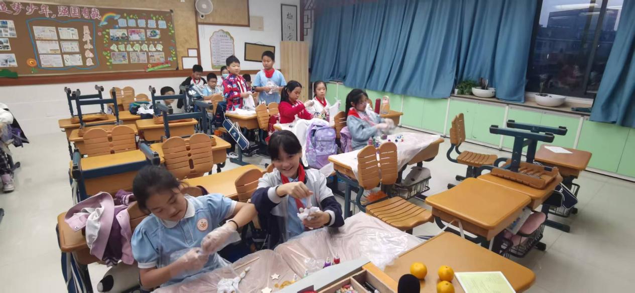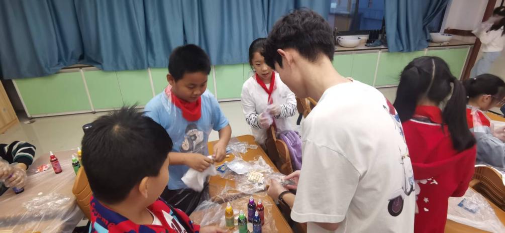 图三小老师指导学生做扎染、分布料