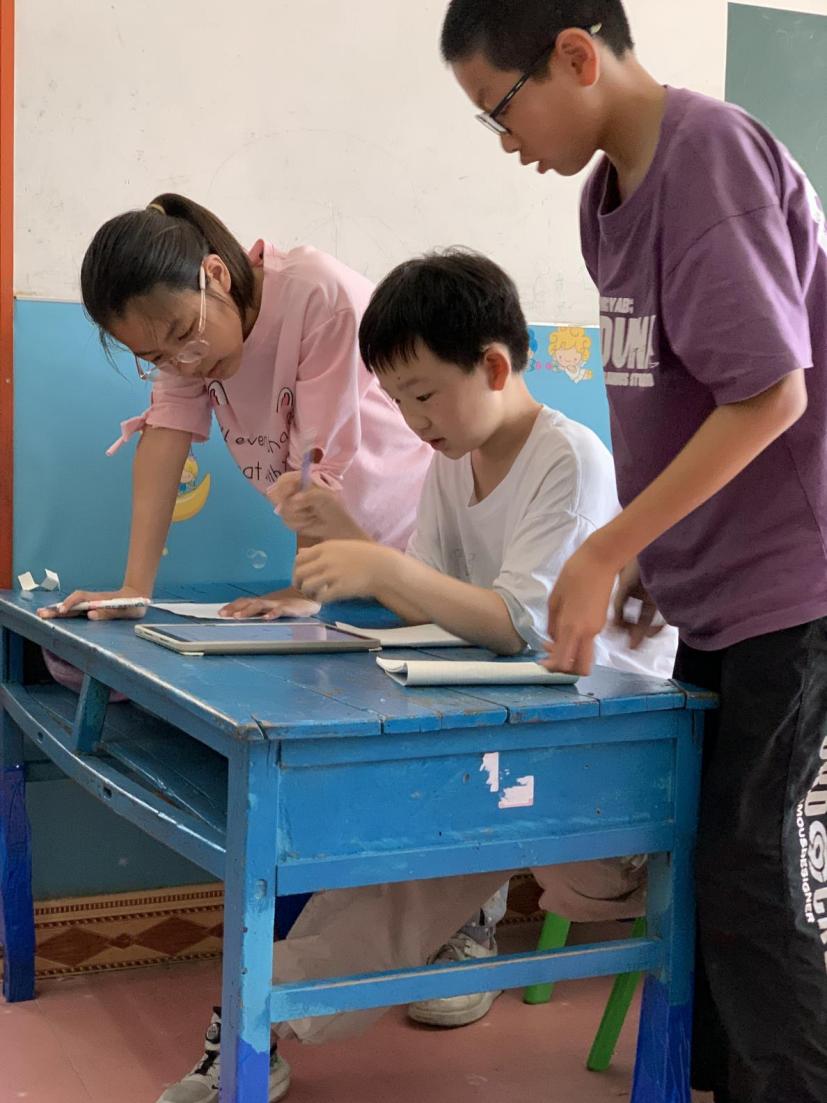 图四:学生们捆绑布料