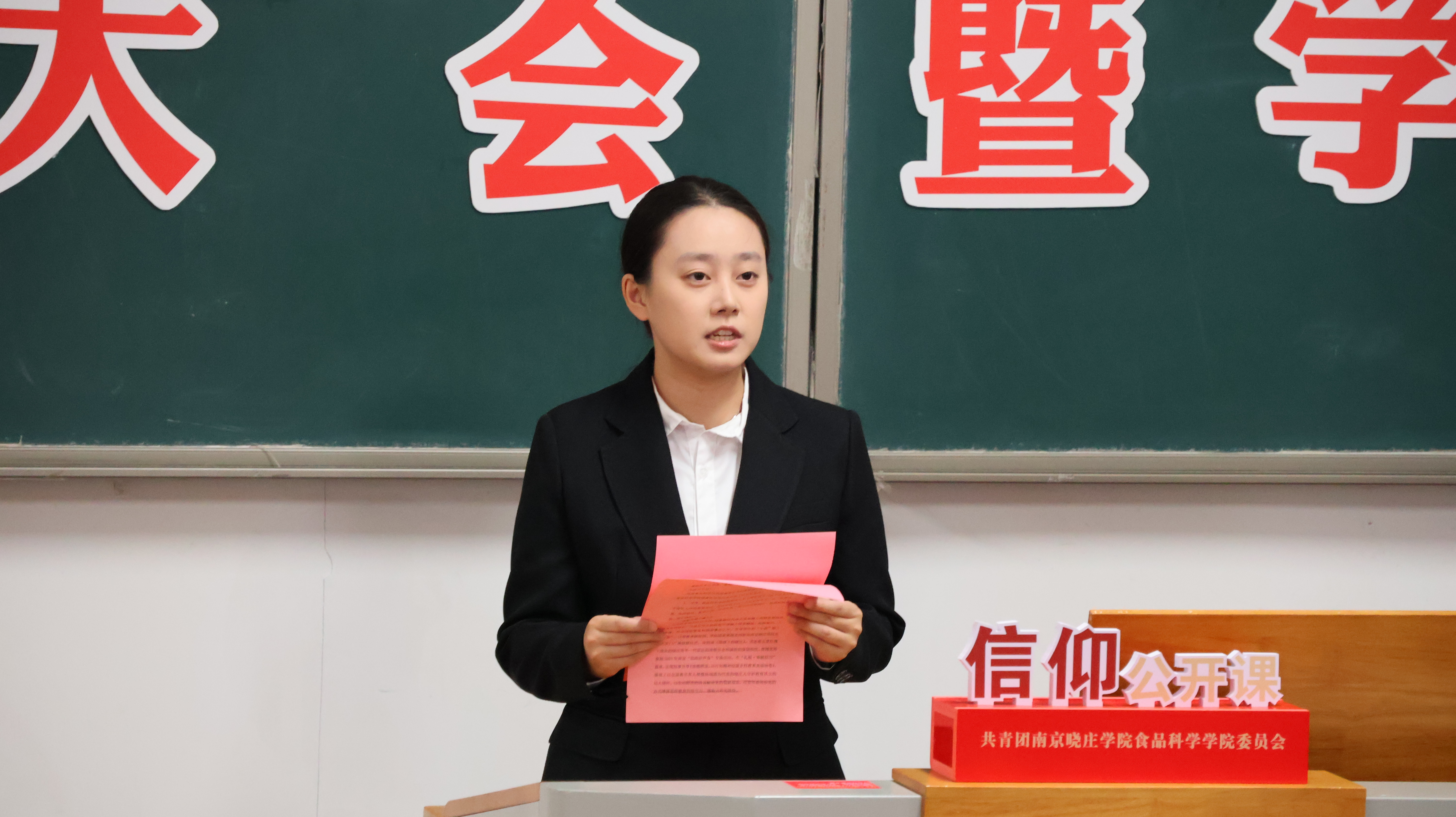 在激昂的国歌声中,大会正式开幕。校团委书记乔君臣首先致辞,他充分肯定了食科院团委和学生会在过去工作中取得的优异成绩,并对食科院为学校青年工作及共青团组织建设作出的积极贡献表示衷心感谢。吴雨龙副书记代表学院党委致辞,他对上一年度团学工作给予高度评价,并对未来工作提出三点希望:全院团员青年要坚定信念、奋发成才,勇当时代先锋;各级团组织要创先争优、开拓创新,推动青年工作实现跨越式发展;全体团学骨干要提升能力、增强素质,积极投身于共青团事业。
