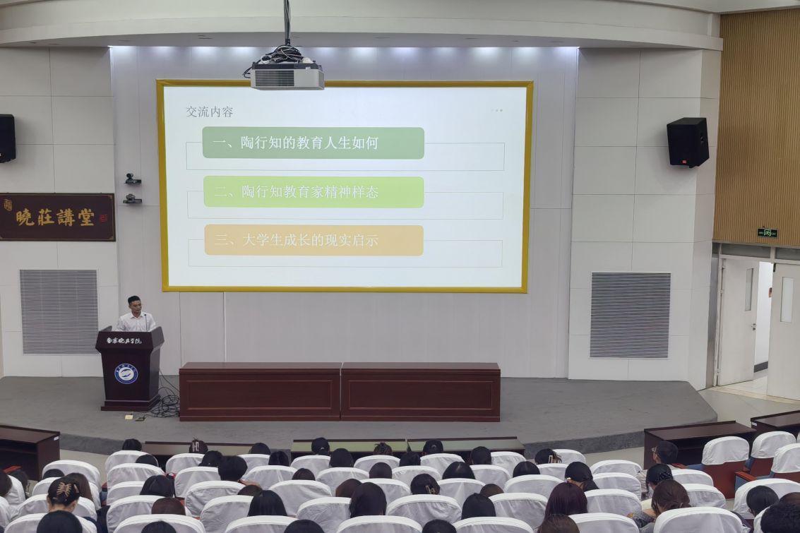为弘扬教育家精神,引导学生树立远大理想,10月14日下午,食品科学学院特邀陶行知研究院程功群老师,在图书馆报告厅开展了题为“陶行知的教育家精神及对当代大学生的启示”的专题讲座。2025级全体新生在讲座现场认真聆听。
