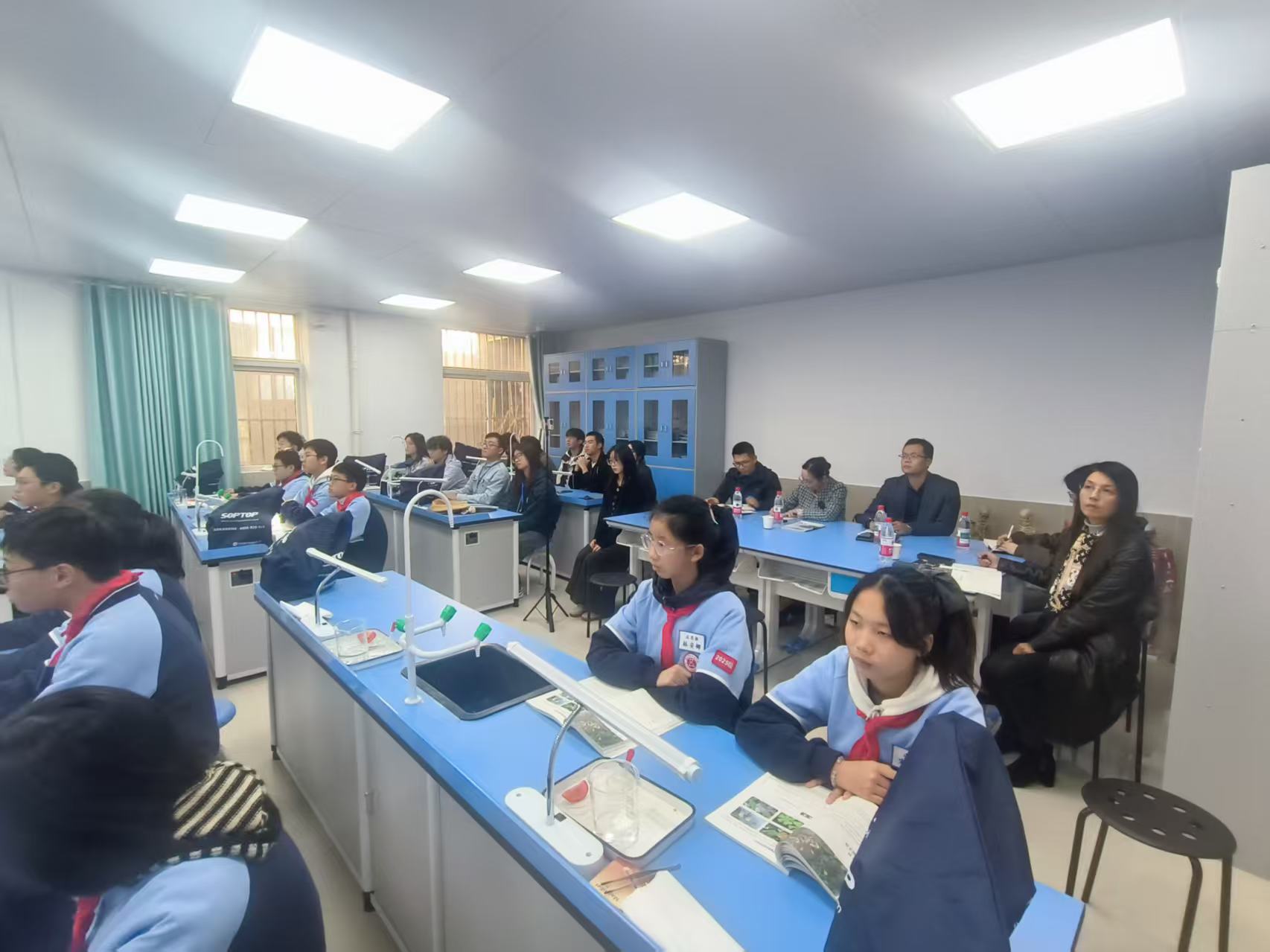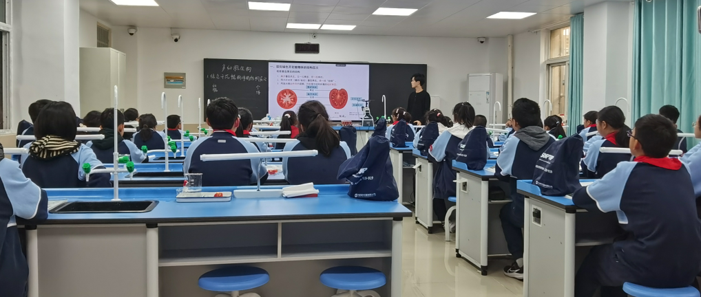 在实习学校党委书记徐萍的陪同下,老师们走进课堂,观摩了生物科学(师范)专业康嘉晨同学讲授的《多细胞生物体的组成》一课。课堂上,康嘉晨同学教态从容,思路清晰,不仅能熟练运用多媒体,还巧妙设计了“植物体结构层次实验”,引导学生动手实践、分组讨论,课堂氛围活跃,充分展现我院师范生深厚的专业功底与教学潜能,获得一致好评。