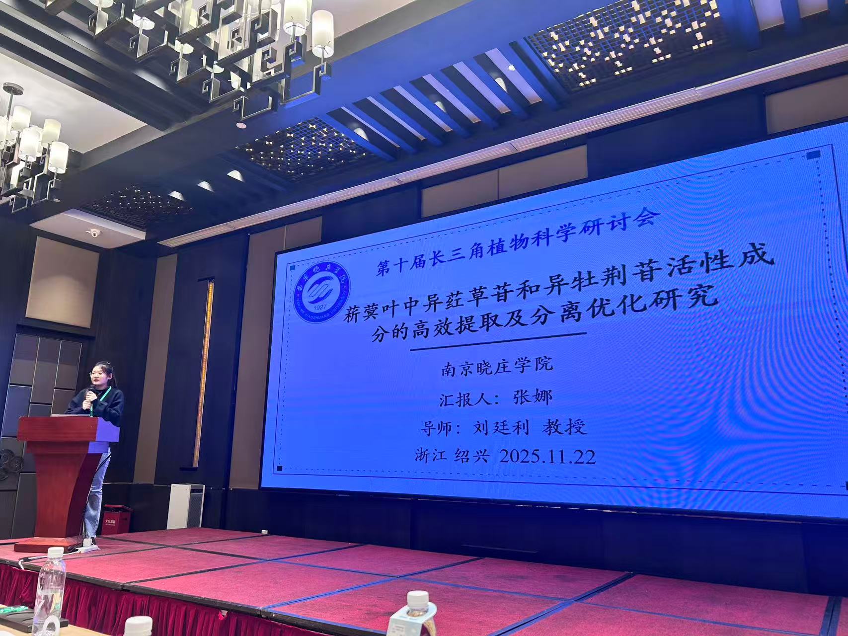 1121日,食品科学学院院长贲爱玲教授、刘廷利教授、赵茹老师及研究生代表赴绍兴参加第十届长三角植物科学研讨会。此次会议汇聚了长三角地区乃至全国植物科学领域的知名专家、学者与青年科研骨干,优秀学生,围绕植物系统进化与生物多样性和植物代谢与发育生物学两个主题展开深入交流,为推动区域植物科学研究协同发展搭建了重要平台。