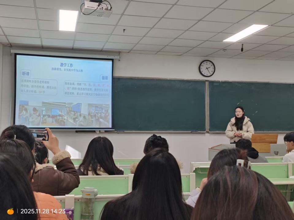 为扎实推进乡村教师定向生教育实习工作,及时复盘实习成效、破解实践难题,11 月 28 日,食品科学学院组织2026届生物科学(师范)乡村教师定向生返校,召开座谈会,聚焦实习中期反思,通过经验交流、问题研讨,为下一阶段实习提质增效筑牢基础。
