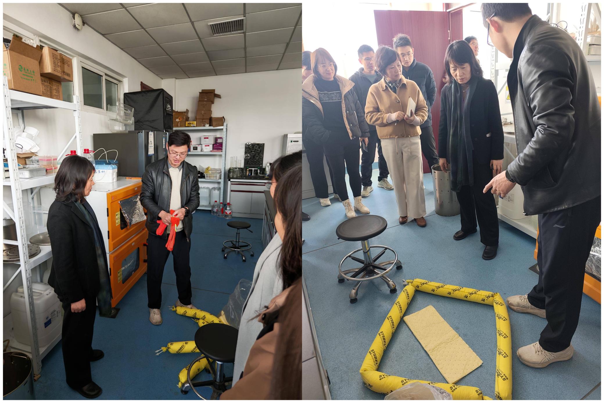 实操演练环节中,常其沛深入科研室,逐一排查潜在安全隐患,现场指导整改方向;针对高温高压等关键设备,详细剖析操作过程中可能出现的风险点,强调预防措施的重要性。现场演示液体危化品泄漏、酒精灯酒精泼洒等突发情况的正确处理方法,参训教师积极参与、互动学习,有效提升了应急实战能力与协同作战水平。周红霞在总结中强调,实验室作为学校教学科研的核心阵地与创新人才培养的重要平台,是安全风险防控的关键环节。全校需牢固树立 “安全第一” 理念,持续开展安全培训与应急演练,防患于未然,不断增强师生安全意识与风险应对能力,构建“学校—学院—实验室—实验人员”四级联动、齐抓共管的安全工作格局。