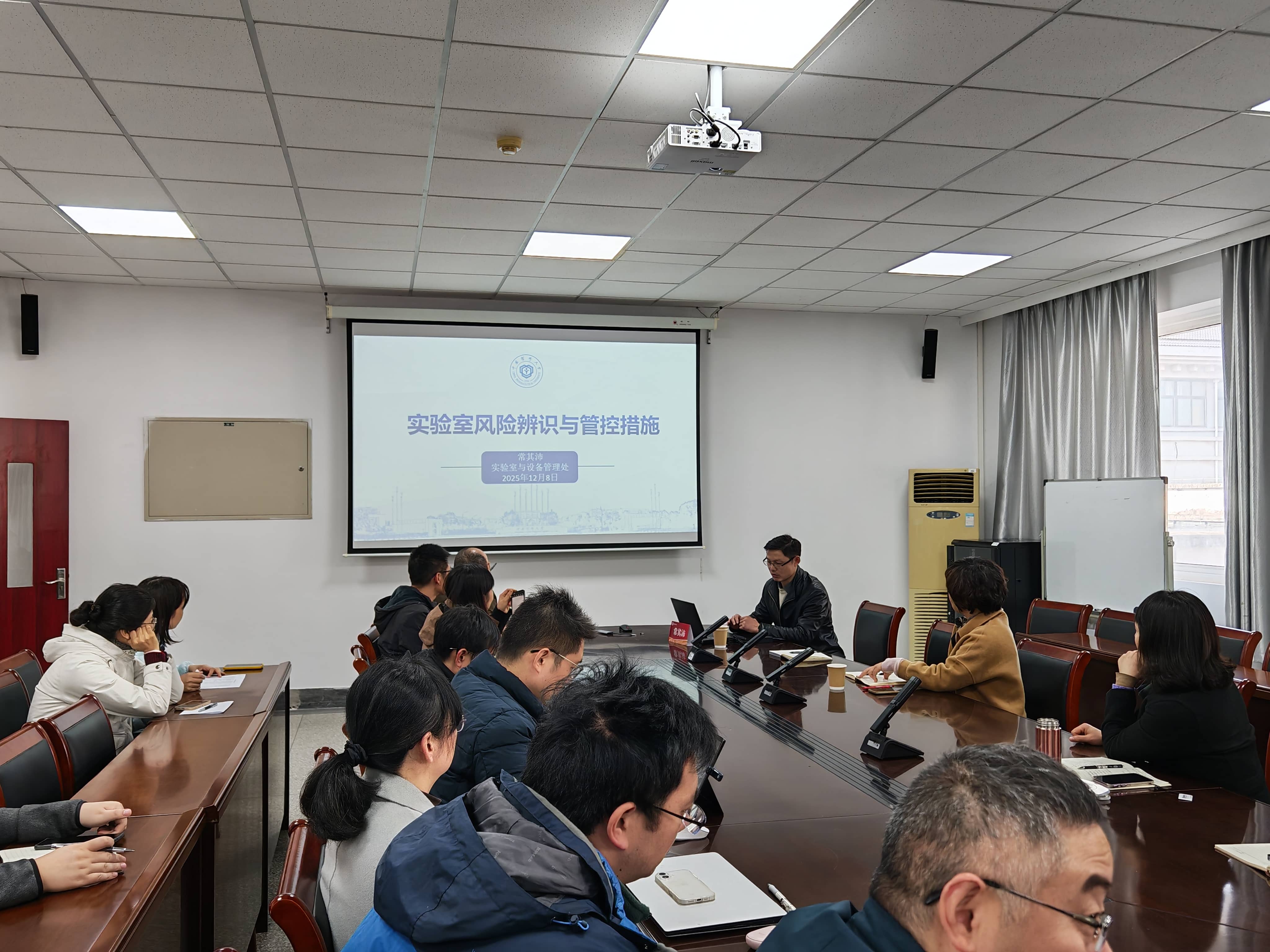 为进一步筑牢实验室安全防线,切实提升实验教师安全风险防范意识与突发事件应急处置能力,12月8日下午,实验室建设与管理处联合食品科学学院举办“守牢安全底线、精进科研匠心”实验室安全专题培训活动。实验室建设与管理处处长周红霞,食科院全体科研室负责人,教学实验中心分管教师及部分环科院科研室负责人参与活动。