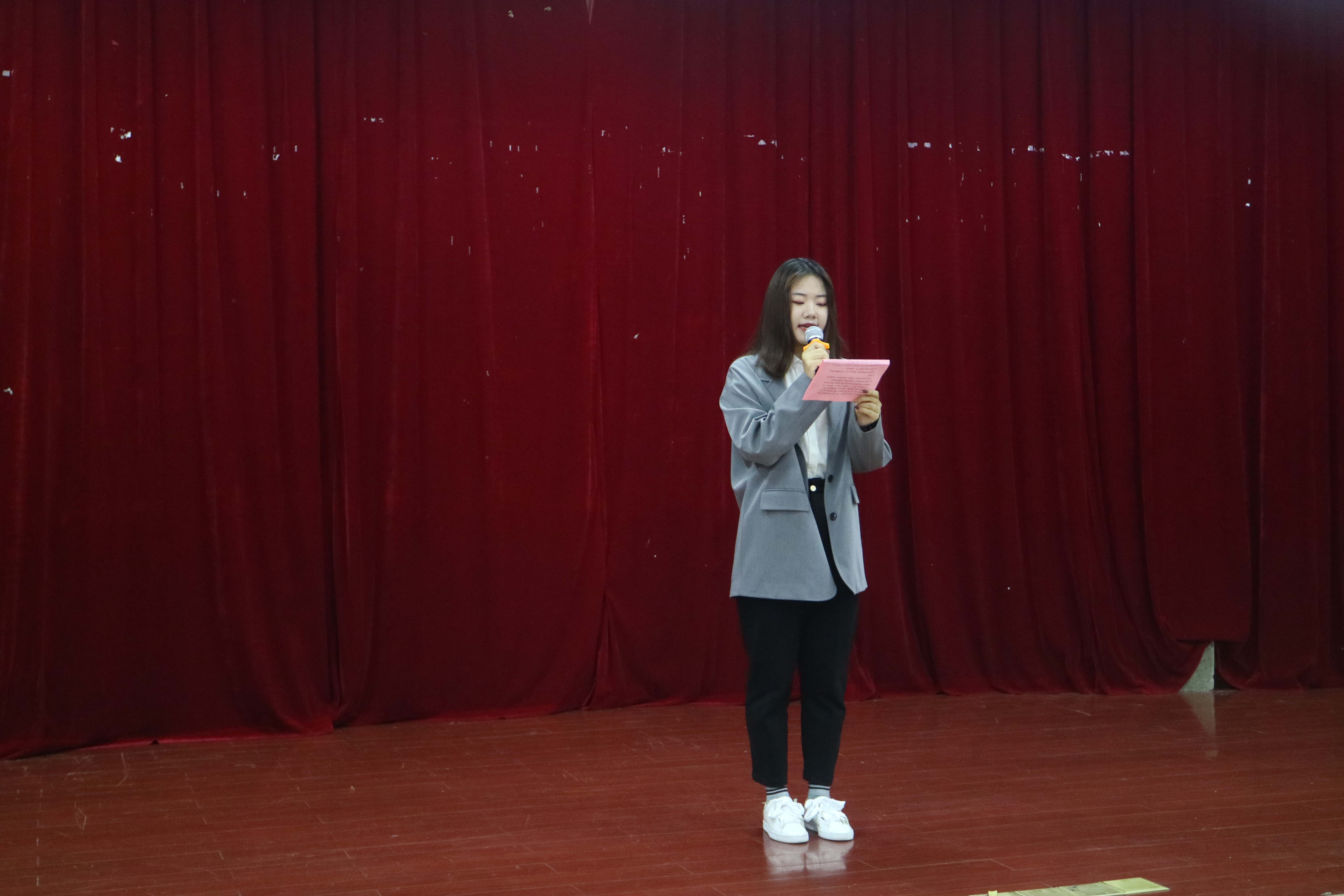 在激昂的国歌声中活动正式开始,共17组作品参赛,分“英雄赞歌”和“永远最可爱的人”两个篇章。其中,20小学教育(科学)班鲍顾雯同学深情朗诵《在抗美援朝纪念馆》,用昂扬的诗句向人民英雄致敬,激发团结奋进的力量;20食品科学与工程类3班黎心茗、周畅两位同学联袂朗诵作品《战鼓》,令听众们对志愿军将士保家卫国英勇无畏的壮举无比崇敬;19生物师范2班代表徐洁、倪纪萌通过作品《祖国,我回来了》,重现主人公从朝鲜战场乘车过鸭绿江桥回到祖国的情景,表达了其对祖国的无比思念和对和平无比渴望之情,引起现场观众强烈反响;最终《在抗美援朝纪念馆》凭借出色发挥,荣获比赛一等奖,《战鼓》等5组作品分获二、三等奖。