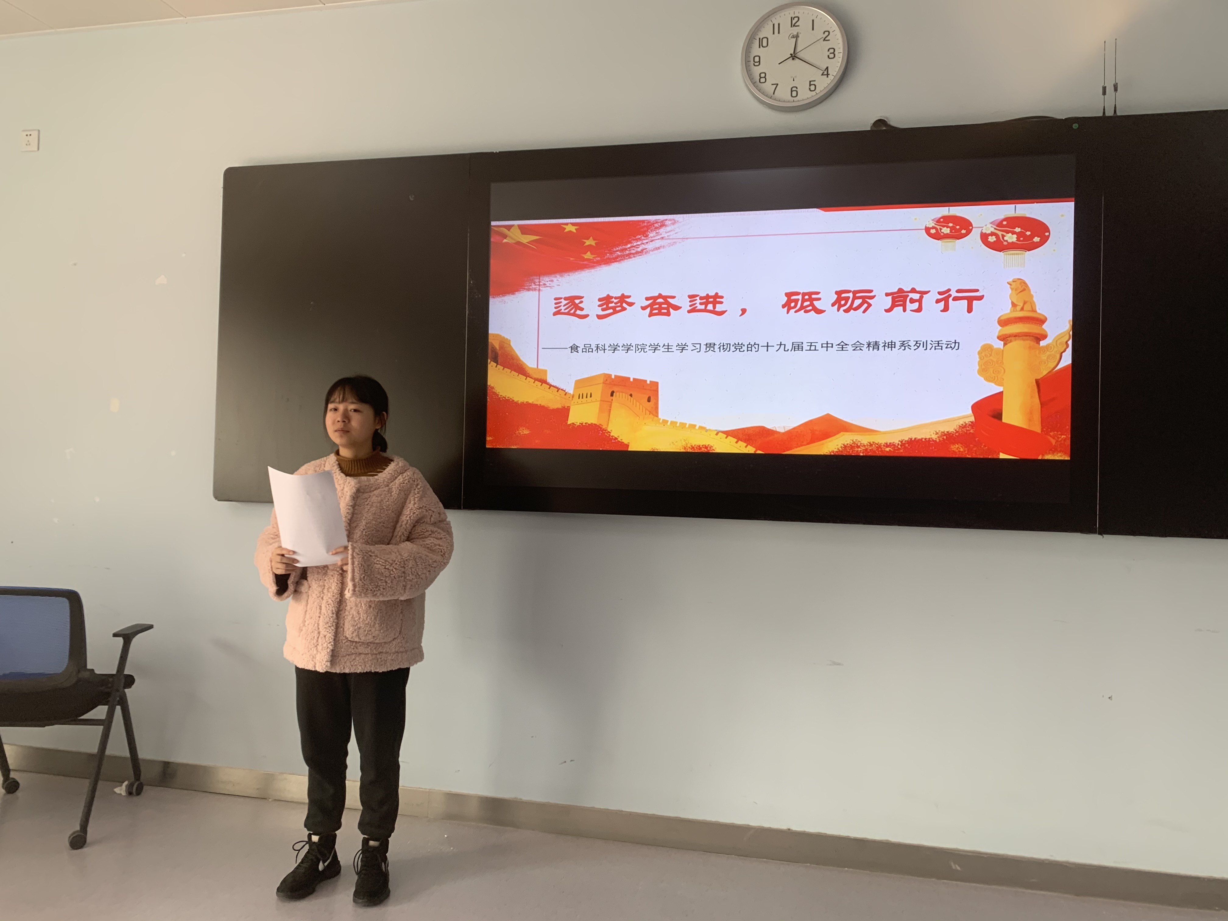 为深入学习宣传贯彻党的十九届五中全会精神,领会全会精神实质和丰富内涵,食品科学学院举办了学习党的十九届五中全会精神主题活动。院分团委精心组织,以多种形式开展理论学习,全院同学积极响应,掀起全员学习热潮。