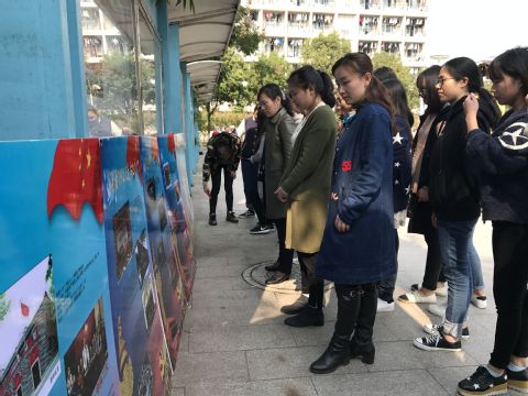 党代会是党的发展历程中标志性的事件,是党的历史的重要节点。从1921到2017,从红船建党伟业到中国梦的启航,从一大到十九大,每次党代会都是在当时形势发展的重要时刻召开的,作出的决策大都在党的发展史上起过重要作用。活动现场,通过展板展示了中国共产党的一大到十九大会议中的红色故事,重温党的发展光辉历史。现场的观看的同学通过展板认真学习和了解了党一大到十九大会议时间、地点及核心内容,了解中国共产党在领导中国人民在民主革命、祖国建设当中历经几多艰辛与坎坷、几多奋进与辉煌!