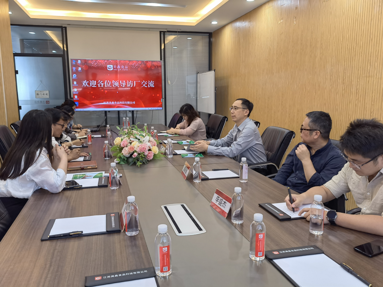 为学习贯彻党中央、国务院及学校党委关于高校毕业生就业工作的决策部署,加快落实访企拓岗促就业专项行动,进一步拓展优质企业、开发优质岗位,实地了解企业用人需求,全力促进我院2023届毕业生更加充分更高质量就业,5月22日上午,食品科学学院院长周峰率队前往江苏美鑫食品科技有限公司开展访企拓岗活动。美鑫公司研发经理许雄和人事经理黄曼对我院一行表示热烈欢迎。