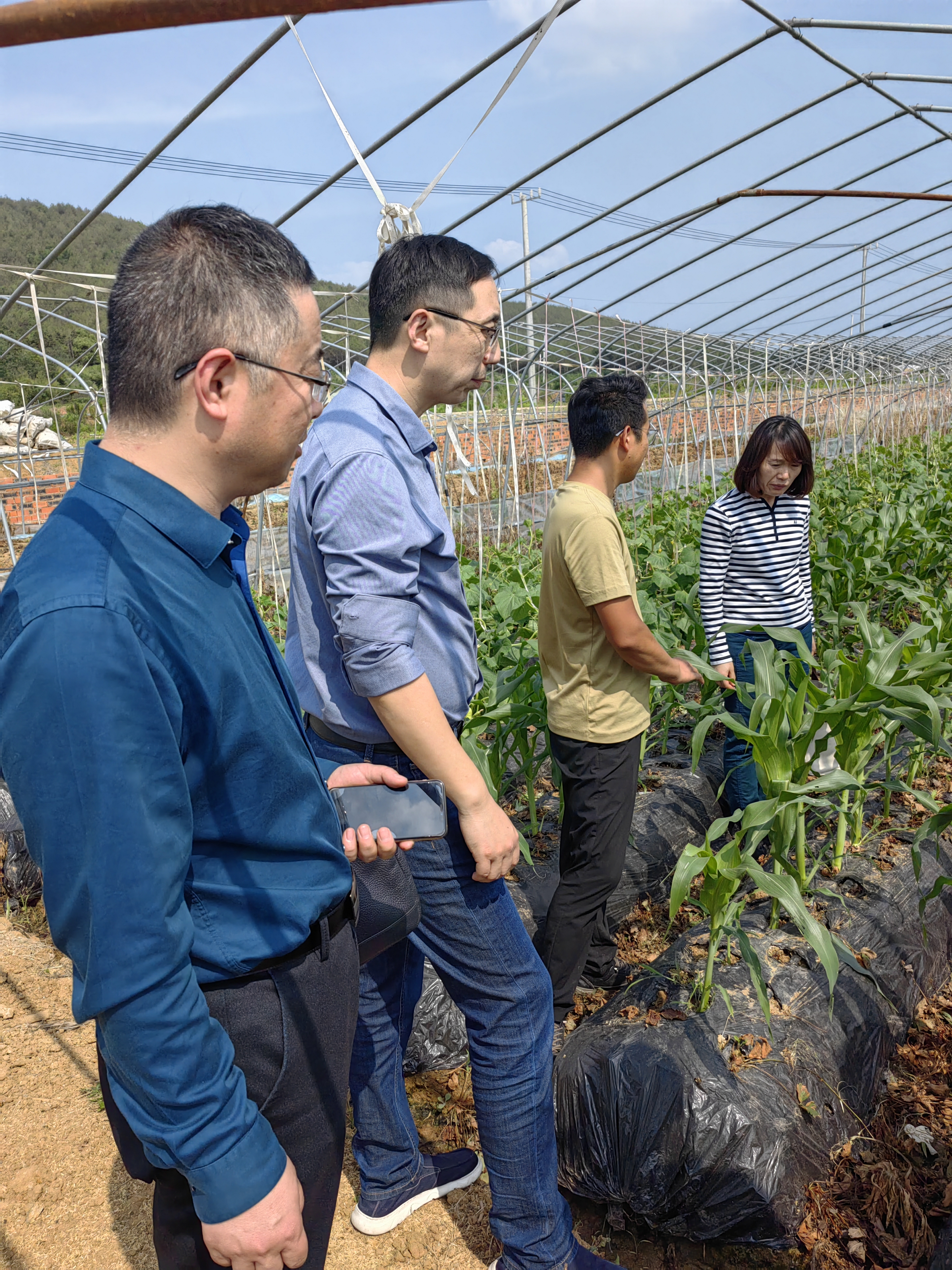 随后,团队实地考察了种植大棚区。在实地走访过程中,合作社曹磊总经理提出了生产技术中遇到的瓶颈问题,并与我院教师就技术方面进行了深入的交流。双方表示将进一步开展合作。