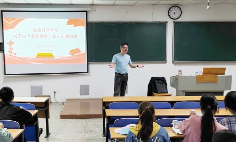 为进一步推进2023年大学生就业工作,响应团中央大学生就业引航计划相关要求,开展江苏省大学生“苏青展翅”就业引航宣讲活动,帮助学生强化就业意识,把握就业方向,提升就业能力,食品科学学院于55日在行知组团E104举办大学生就业引航宣讲活动。学院各年级学生参加,党总支副书记吴雨龙主讲。