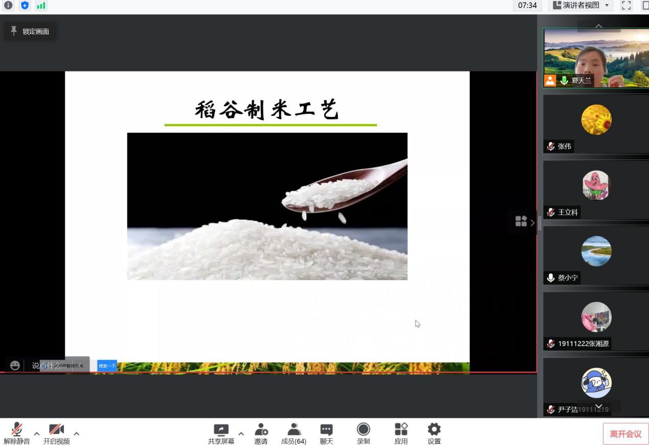 课上,夏天兰老师讲授了《食品工艺学》,霍光明老师讲授了《食品包装学》。二位教师采用腾讯会议、雨课堂授课途径开展教学,采取探究式、启发式、研讨式、互动式的多样化教学方法,深入浅出地引导学生开展学习。整个授课过程教学目标明确,教学手段多样,视频流畅、语音清晰,师生线上交流频繁,互动热烈,反映出老师们扎实的教学基本功、良好的信息化素养以及优秀的线上教学能力。