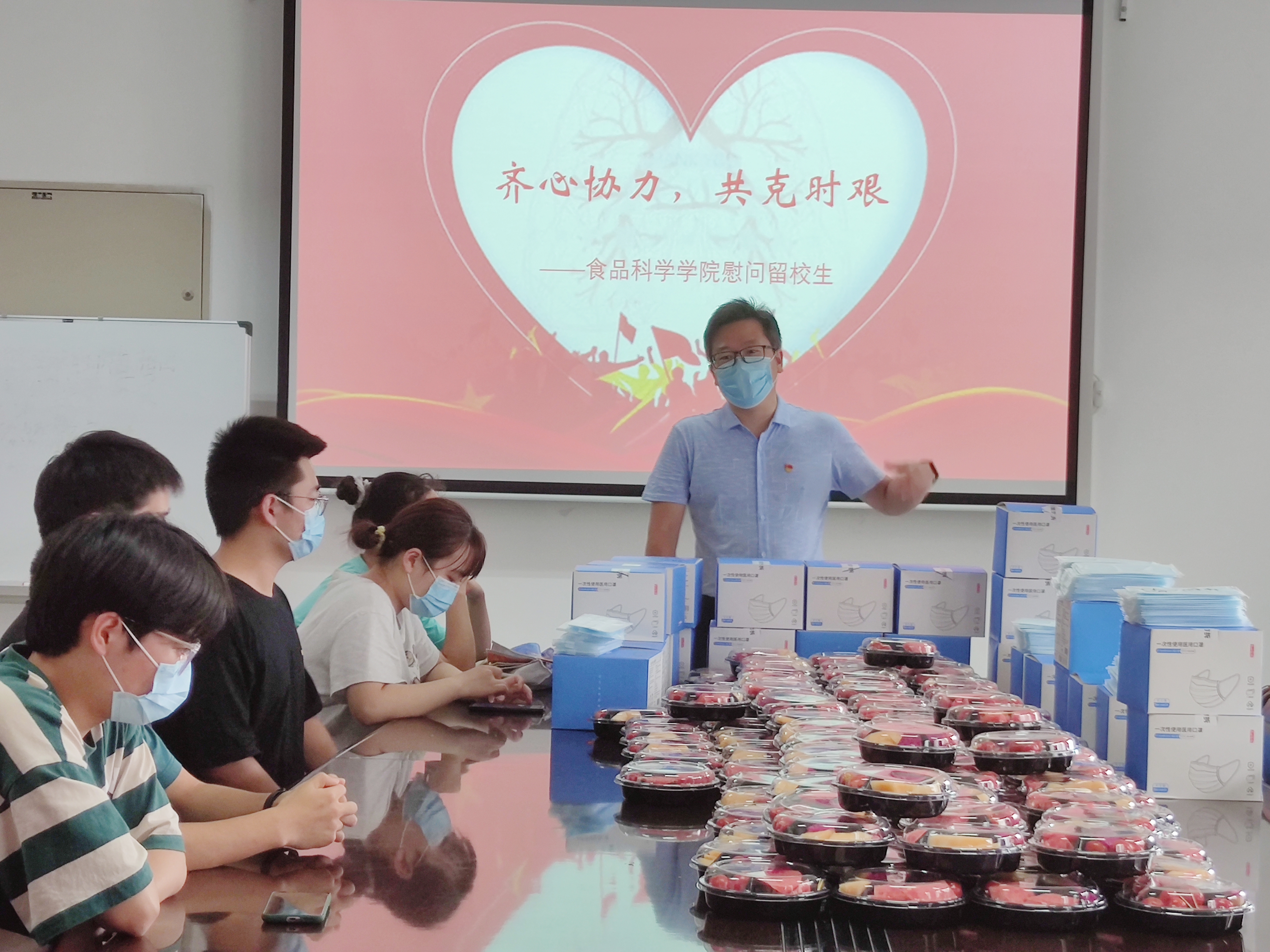 为进一步加强学院疫情防控工作,对留校生进行人文关怀,食品科学学院于8月9日在理科组团C405慰问留校学生,学院党总支副书记吴雨龙主持会议,强调学校疫情防控要求,坚定疫情防控必胜信心。