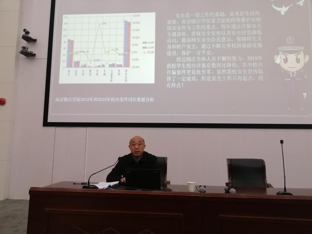 胡中山就人身安全、财产安全两个方面进行讲解,对食品科学学院2020年校内外110接警数据进行分析,通过身边的事实案例和详实的数据展现网络诈骗、校内盗窃等问题对大学生造成的巨大伤害,并提出具有针对性的防范措施。他还指出大学生防盗意识淡薄,容易轻信他人,提醒同学们要提高安全意识,加强自我防范能力。