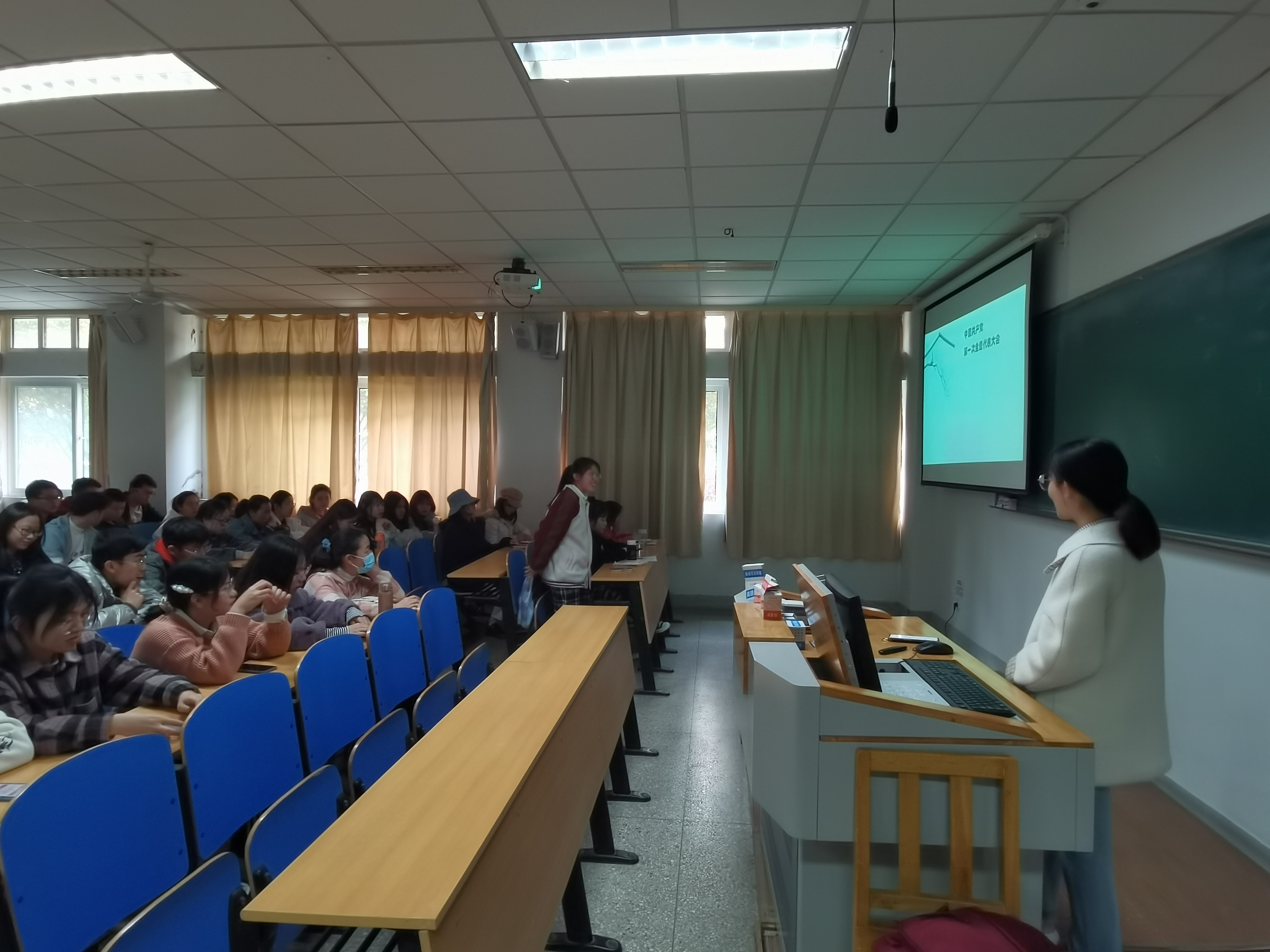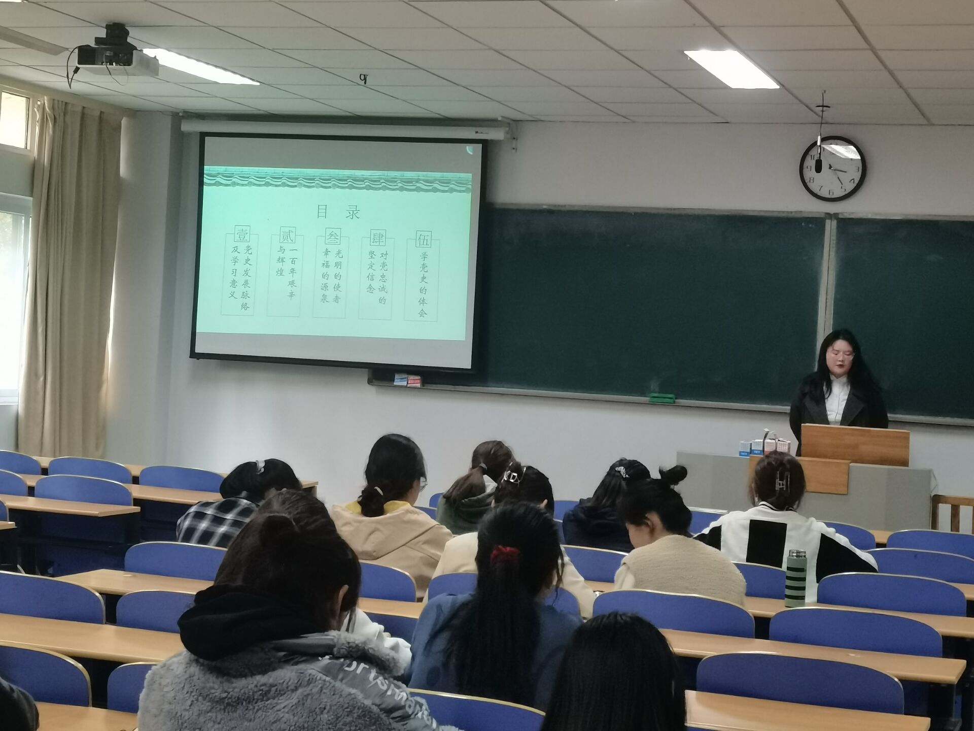由我院师范专业“小先生”社团牵头,在学院非师范专业班级中宣讲“遵义会议、抗美援朝、中共十一届三中全会、党的十八大以来的历史性成就”等中国共产党历史中诸多代表性事件。另通过播放视频《中共党史专题讲座》,回顾党的光辉历程,铭记党的艰苦卓绝奋斗史,讴歌党的丰功伟绩,更加坚定了广大团员青年永远跟党走的理想信念。宣讲团还为同学们讲述了陶行知先生的生平事迹、生活教育理论、四种精神、五大主张,帮助同学们深刻理解陶行知先生“捧着一颗心来,不带半根草去”的伟大思想,帮助同学们更好领会校训“教学做合一”的真正含义。