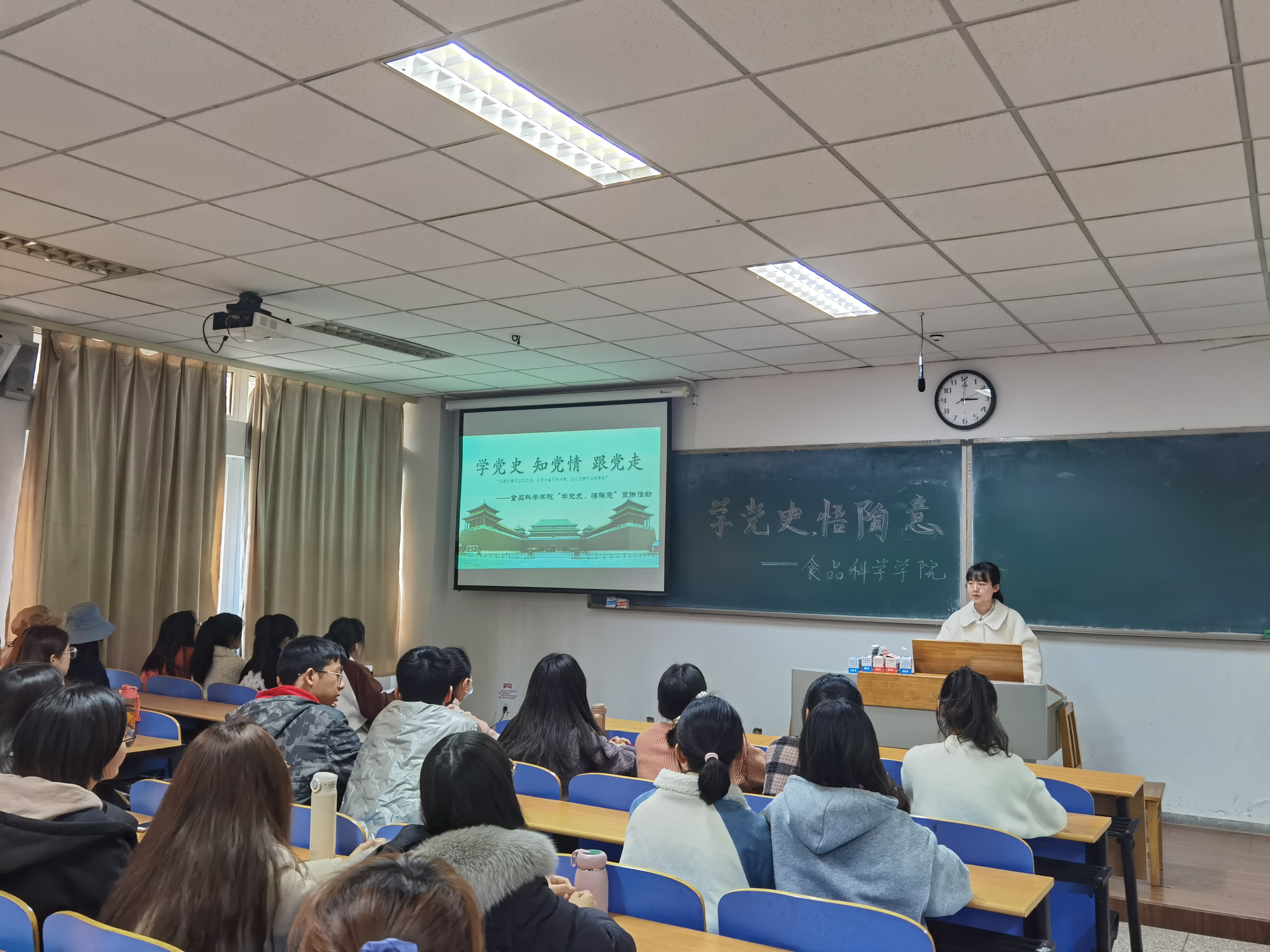 通过此宣讲,全院团员青年对中国共产党的光辉历史有了更全面的了解,大家纷纷表示,在今后的学习生活中要牢记使命、坚定理想信念,充分发挥先锋模范作用,积极为社会发展做出应有的贡献。未来食科院会继续重视党史学习教育,引导广大团员青年坚定不移“学党史,悟思想,办实事,开新局”,用实际行动践行“讲党性,听党话,感党恩,跟党走”,以优异成绩迎接中国共产党中国共产党建党一百周年。