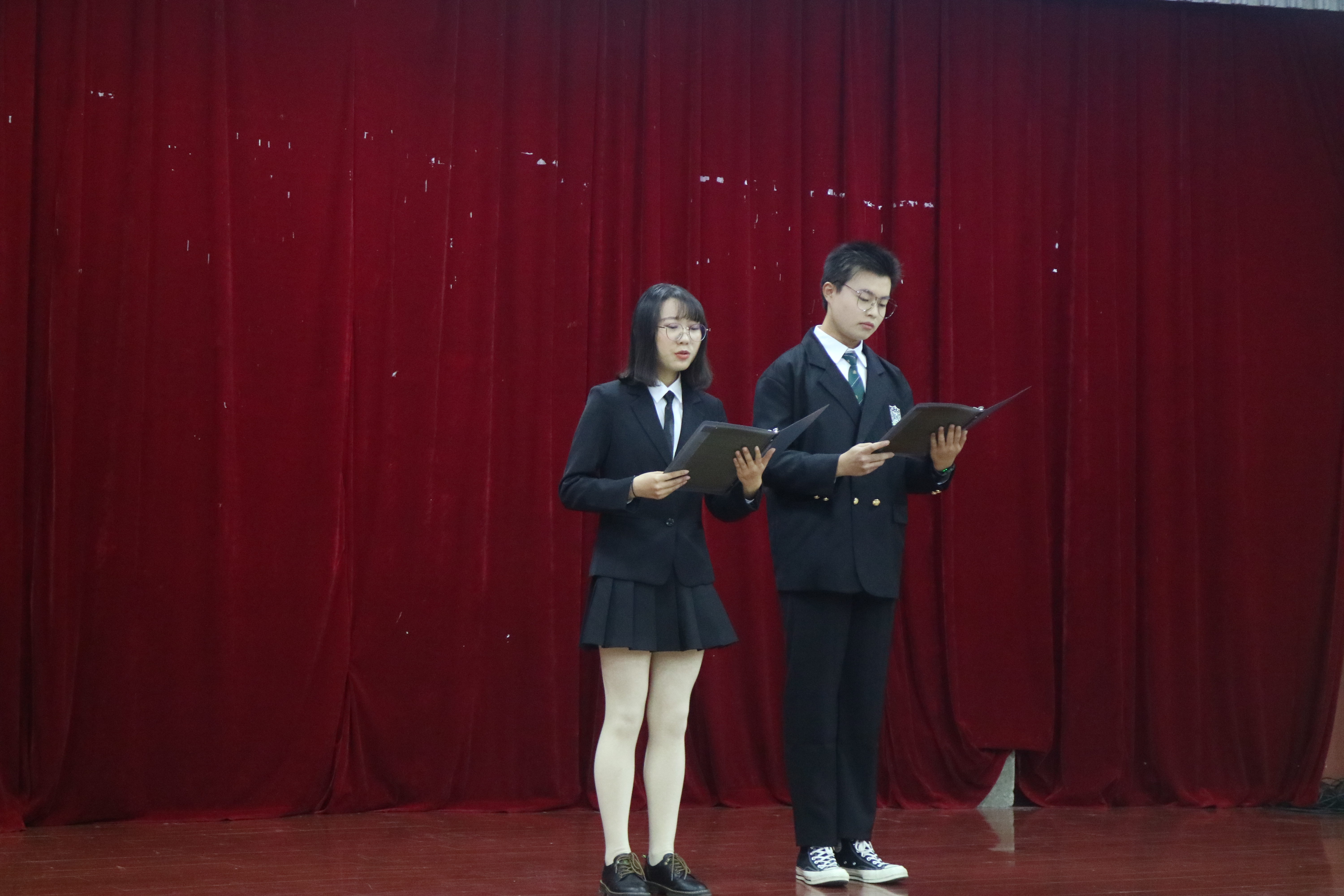 在激昂的国歌声中活动正式开始,共17组作品参赛,分“英雄赞歌”和“永远最可爱的人”两个篇章。其中,20小学教育(科学)班鲍顾雯同学深情朗诵《在抗美援朝纪念馆》,用昂扬的诗句向人民英雄致敬,激发团结奋进的力量;20食品科学与工程类3班黎心茗、周畅两位同学联袂朗诵作品《战鼓》,令听众们对志愿军将士保家卫国英勇无畏的壮举无比崇敬;19生物师范2班代表徐洁、倪纪萌通过作品《祖国,我回来了》,重现主人公从朝鲜战场乘车过鸭绿江桥回到祖国的情景,表达了其对祖国的无比思念和对和平无比渴望之情,引起现场观众强烈反响;最终《在抗美援朝纪念馆》凭借出色发挥,荣获比赛一等奖,《战鼓》等5组作品分获二、三等奖。