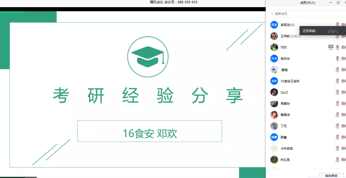 吴向华老师首先对考取研究生的食品质量与安全专业的2016级同学表达了诚挚的问候和良好的祝愿。接着由考取研究生的同学畅谈自己的考研经历。