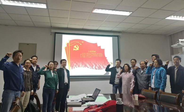 观影后,支部党员老师在党支部书记吴雨龙同志的带领下进行了重读入党志愿、重温入党誓词、重忆入党经历、重问入党初心以及党员亮身份、服务亮承诺、工作亮标准、担当亮作为的“四重四亮”活动。
