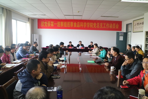 巡察组组长对食品科学学院党总支巡察工作做了总体安排部署,明确了巡察时间、巡察对象、巡察任务和巡察重点,强调了工作程序、方式方法、作风纪律及其他工作要求。食品科学学院党总支贲爱玲书记代表所在单位党政领导班子就支持和配合好巡察工作表态发言。