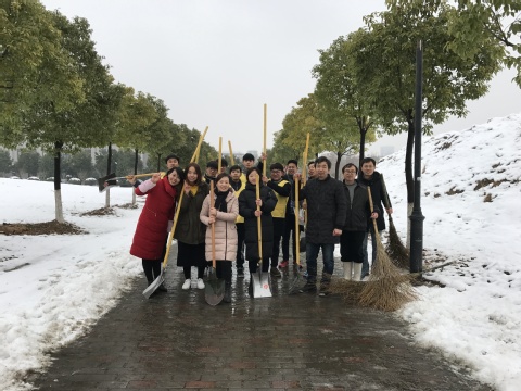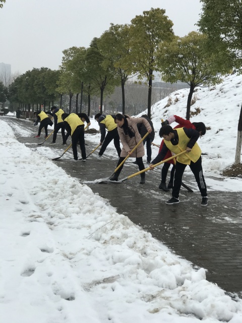 在零下的低温中扫雪工作异常艰难,师生们的手和脸都冻得通红,但是,这丝毫没有影响大家的热情和工作效率,凛冽的寒风阻挡不了高涨的情绪,大家拿起扫把,铁锹,用自制的推雪板清扫道路上的积雪。经过奋战,大家团结协作,发扬吃苦耐劳、顽强拼搏的战斗精神,以最快的速度将积雪清理干净,为过往车辆和学院师生创造了一个安全的出行环境,为晓庄师生们在寒冷的天气中铺就了一条温暖道路。