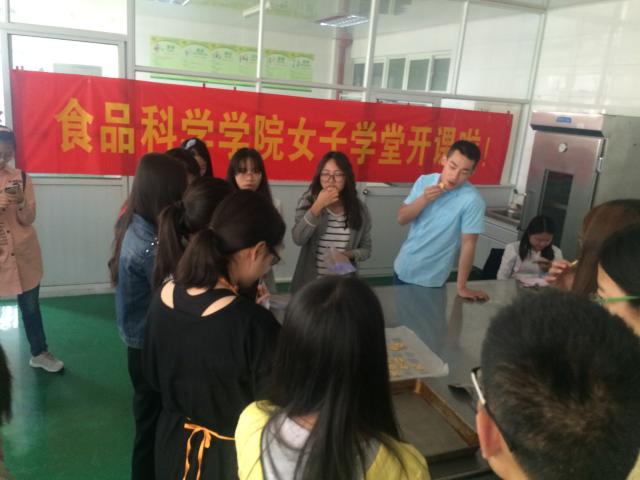 5月9日,食品科学学院“快乐烘焙、健康生活”女子学堂第一课在我院烘培实验室104 正式开课。