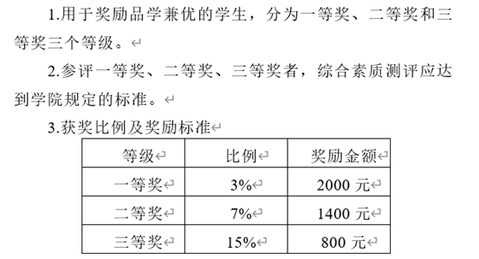 二、资助标准:平均资助标准为每人每学年1000元,具体标准由各学院根据实际情况分500、1000、1500元三个档次发放。