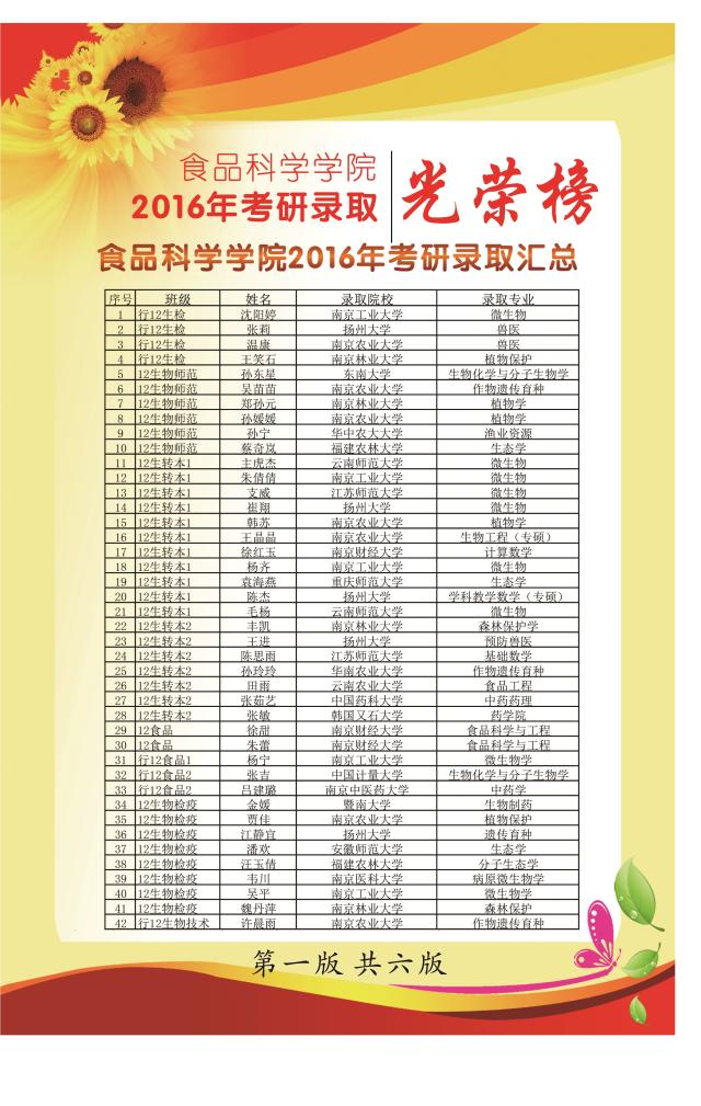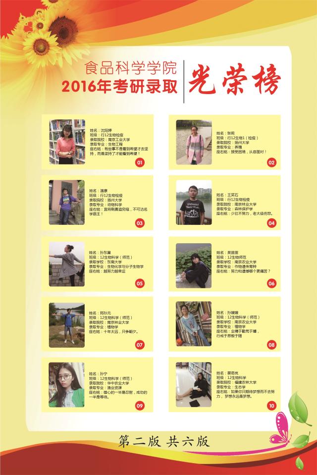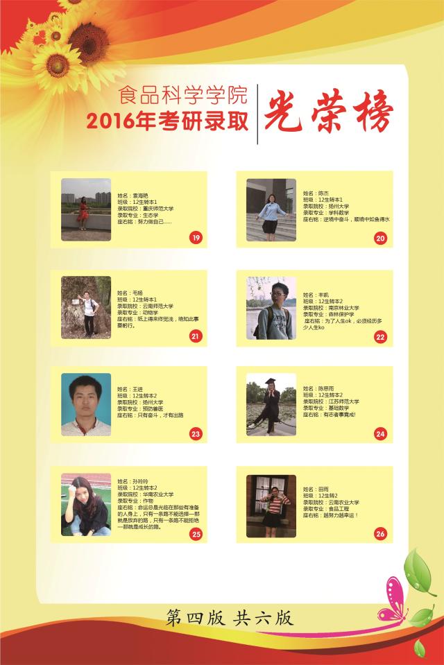 食品科学学院2016届考研录取学生风采
