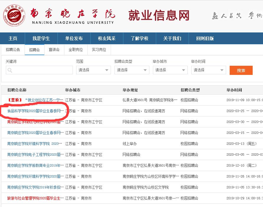 食品科学学院2020届毕业生春季网络招聘会操作详解
