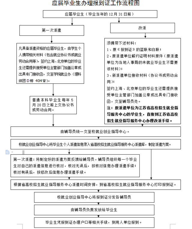 应届毕业生办理报到证工作流程图