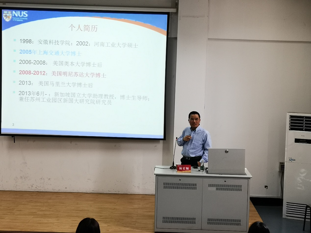 2019年9月24日下午,新加坡国立大学食品科技教授、博士生导师杨宏顺在我院作了题为“从郭靖的成长经历谈食品科学专业学习之路”的学术报告,报告由食品科学学院副院长汪振炯主持,食品科学学院党总支书记贲爱玲及相关教师聆听了此次报告。