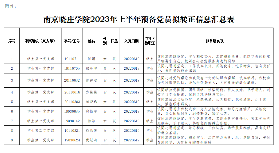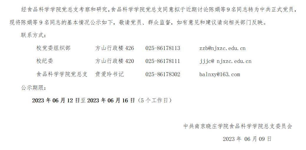 食品科学学院党总支2023年上半年预备党员拟转正公示