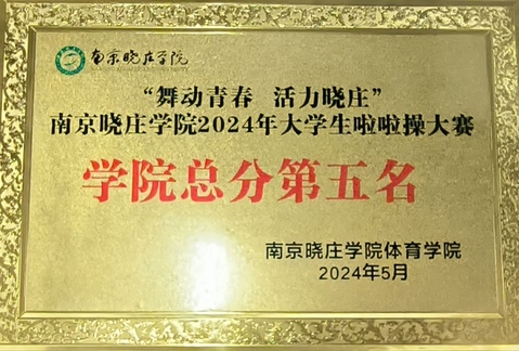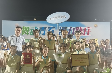 为进一步丰富校园文化生活、提升学生的综合素养,推动学生德、智、体、美、劳全方面的发展,食科院啦啦操队积极参加2024年学校举办的“舞动青春,活力晓庄”啦啦操竞赛。通过不懈的训练和出色的比赛表现,荣获团体总分第五名的佳绩(代表队员:顾桐语、张可欣、冯心慈、沈天芮、顾筠炜、魏蕊、吴安琪、严筱奕、杨涵宇、谢宇菲、刘雅娟)。