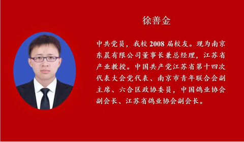2024年6月21日,我校在方山校区隆重举行“南京晓庄学院2024年学生毕业典礼暨学位授予仪式”,特邀请优秀校友代表徐善金(食品科学学院2008届毕业生)作《鸽产业科技带头人的奋斗青春》的主题发言。