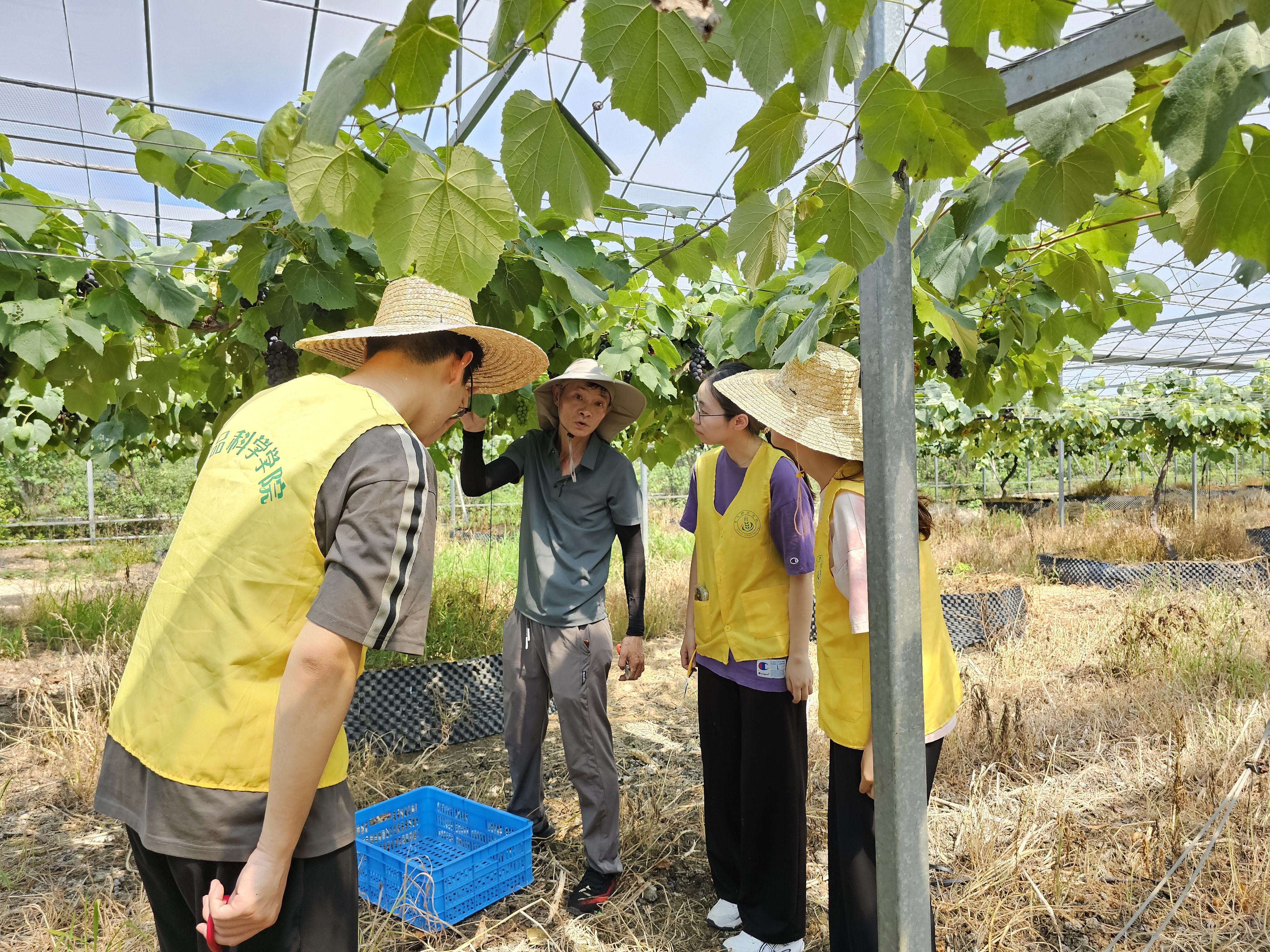 “渔樵耕读”暑期社会实践团队将思政课堂搬至田间地头,由实践团队的思政指导教师王莹在葡萄园为实践团队进行别开生面的实践指导。王莹激励同学们要在一系列乡村实践课程里积极探寻青年助力农业强国建设的工作路径,力求为推动乡村振兴奉献青春力量。实践团队成员向园区的一线种植工人虚心学习葡萄种植管理方法,亲身实践葡萄采摘,并认真探究人工采摘与机械采摘的区别。他们还仔细询问生产过程中遇到的难题,运用所学的专业知识与农民相互交流。团队成员纷纷表示,要积极汲取农业知识,为乡村科技赋予强大能量,助力乡村振兴。