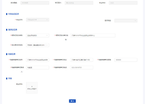 在就业信息上报页面,输入用人单位、报到证、档案等相关信息后,点击“提交”,提交成功后等待学校审核。