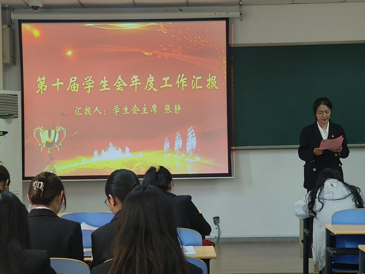 2024 年 10 月 8 日,食品科学学院第十次团员代表大会暨学生代表大会在行知组团 E201 隆重召开,此次大会旨在加强学院学生组织建设,开创学院青年工作新局面。学院党委书记周峰、副书记吴雨龙、校团委沈思婷、全体辅导员以及各班学生代表出席了本次大会,会议由学院分团委书记唐翔主持。