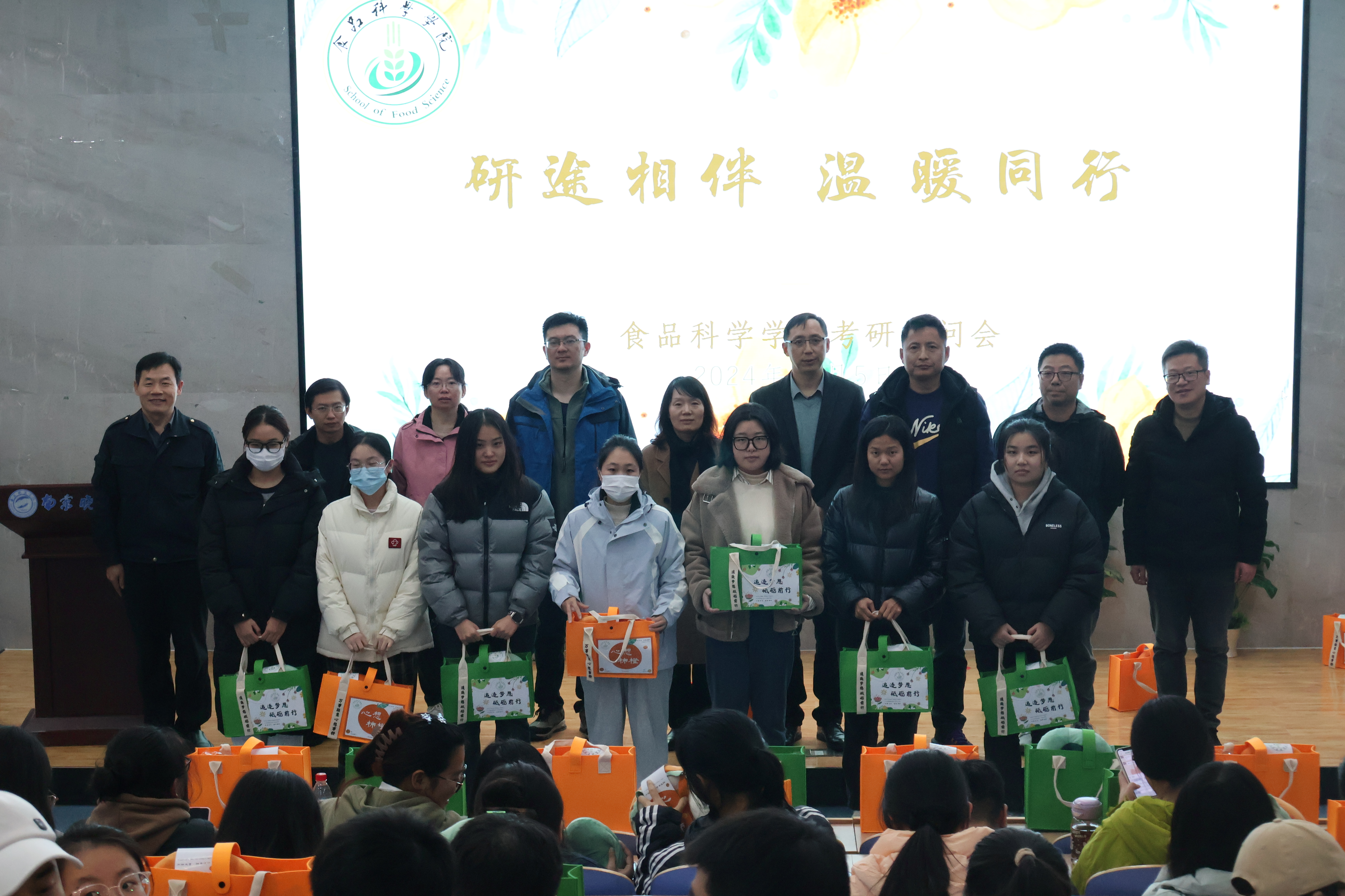 随着 2025 年全国硕士研究生招生考试的临近,食品科学学院精心组织了一场以“研途相伴,温暖同行” 为主题的考研慰问会,为即将踏上考场的学子们加油鼓劲。学院党政领导、21级全体班主任以及辅导员齐聚一堂,将学院的关怀与支持传递给每一位考研学子,帮助他们缓解压力,坚定信念,以更好的状态迎接考试。