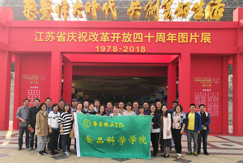 为深入学习宣传贯彻党的十九大精神,全面回顾我国改革开放四十年来波澜壮阔的发展历程,10月23日下午,根据教育厅和学校的统一部署,食品科学学院组织全体教师和党员学生来到南京国际博览中心参观“江苏省庆祝改革开放四十周年图片展”。
