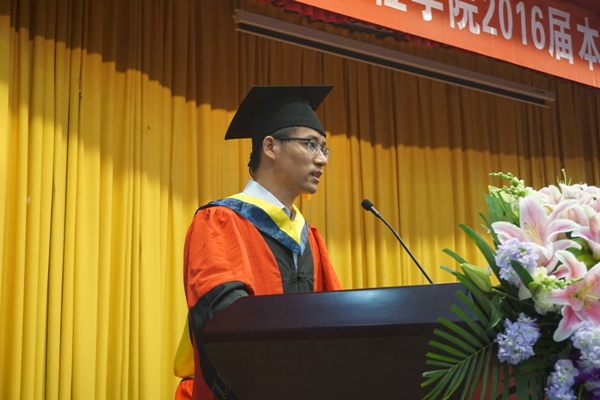导师代表徐光青、学生家长代表苏清兰及毕业生代表仇伟分别在仪式上发言。表达了老师对毕业生的祝愿与期盼;家长对子女获得学位的欣喜,对学校、老师的感谢;毕业生对母校和老师的感恩。