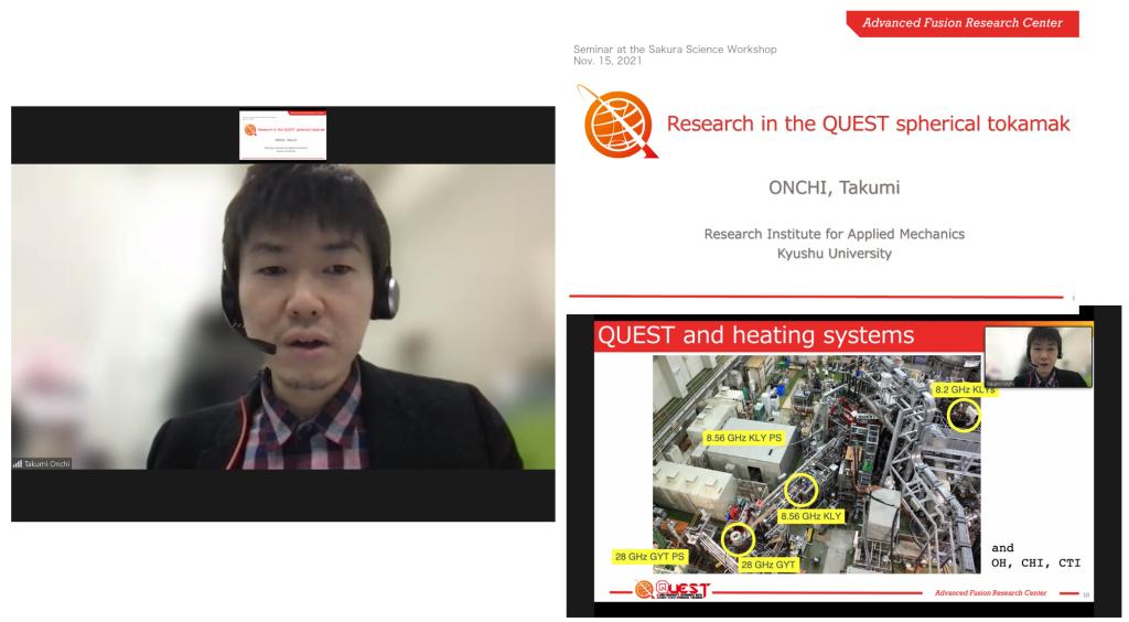 第五场活动中,我校师生通过远程虚拟视频参观了九州大学稳态球形托卡马克实验装置(QUEST),九州大学为本次活动安排了一次现场等离子体点火,我校师生在线近距离目睹了聚变反应的发生。随后长谷川真(Makoto Hasegawa)教授和大宅谅(Makoto Ohya)教授对QUEST装置的基本情况进行了介绍,重点讲解了该装置的控制系统和离子回旋系统。
