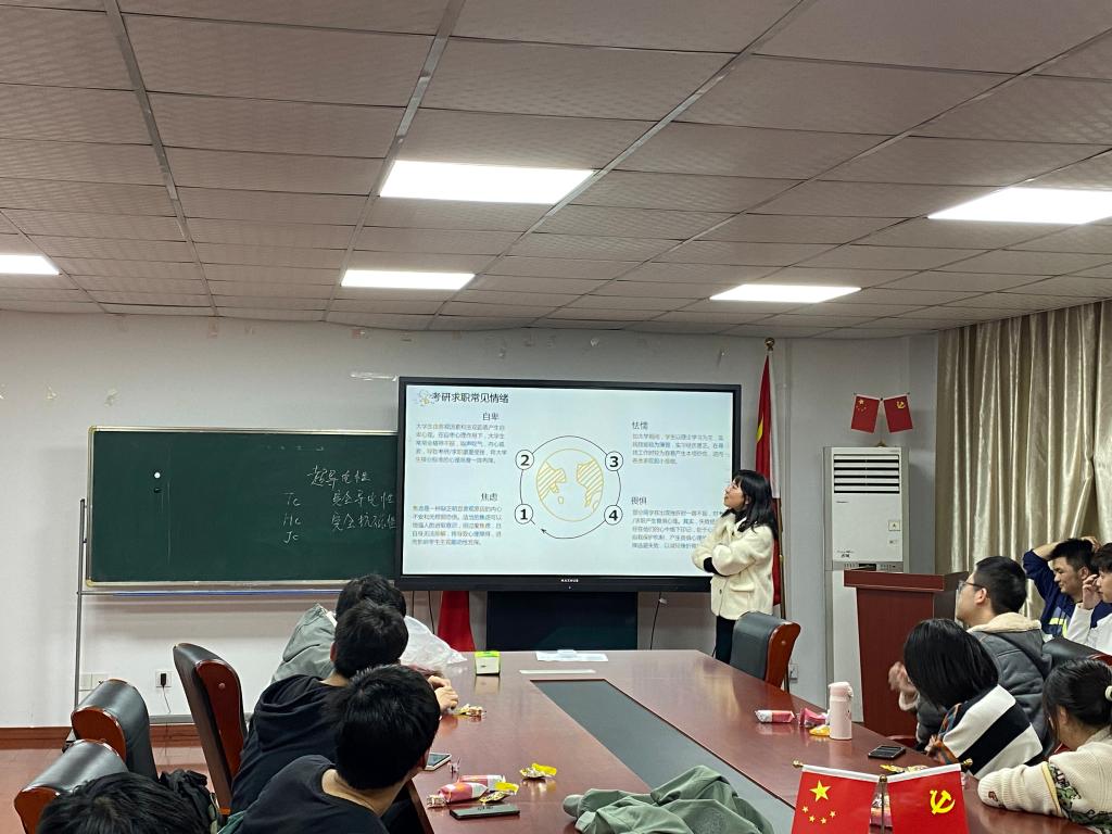 心灵慰问,筑牢底线。从11月底起,学院为考研学子开设“考研心理调适”主题班会、“考前心理咨询”服务,活动覆盖学院2022届全体考研成员。通过轻松的娱乐游戏、清晰的考研心理状态讲解、具体的心理调适办法传授,精准的个体问题解答,为考研学生缓解备考压力,提高应试能力和信心。