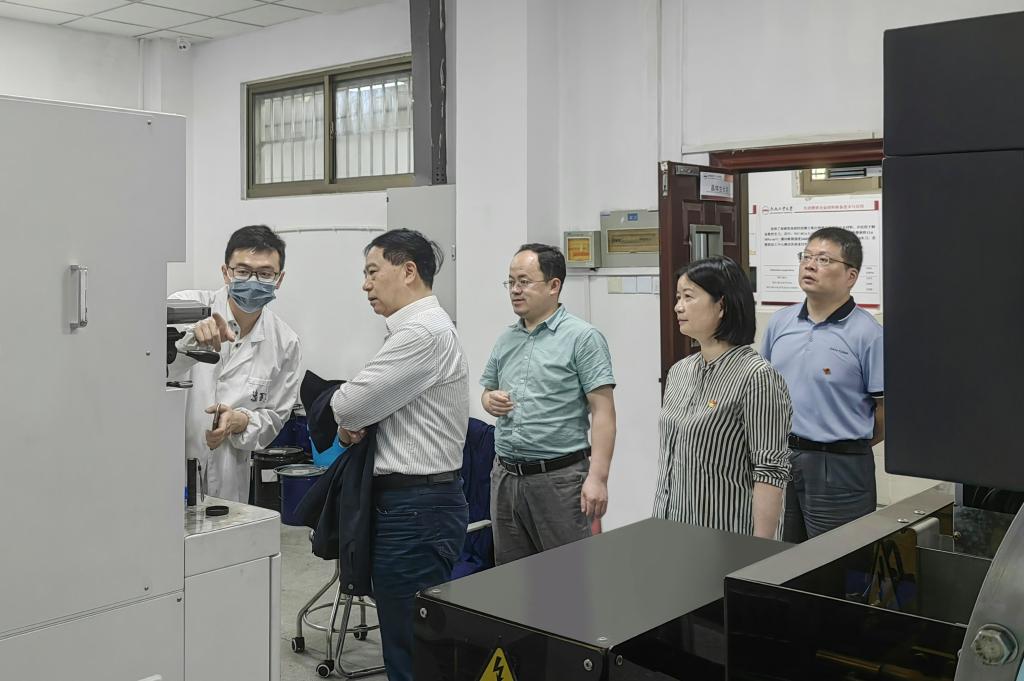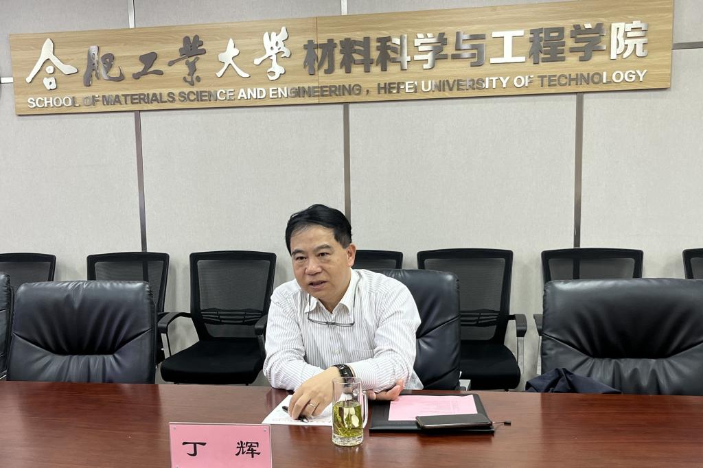 座谈会前,丁辉参观了材料学院的文化廊、双带头人工作室、党建工作室以及材料学院相关实验室。