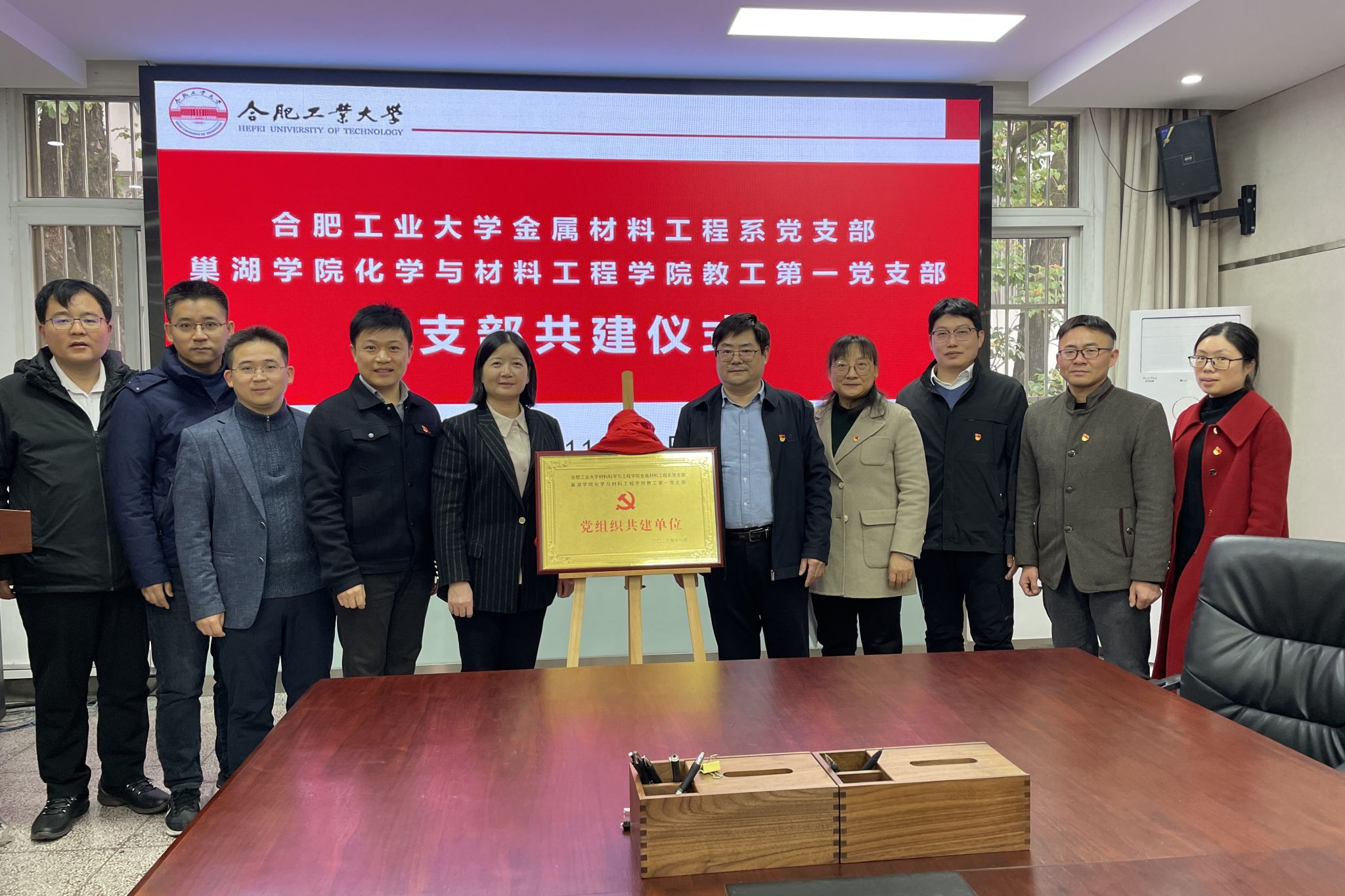 11月15日下午,安徽省“样板支部”、金属材料工程系党支部与巢湖学院化学与材料工程学院教工第一党支部在6686体育小红楼210会议室开展支部共建、学科专业建设交流活动。院党委书记吕珺、党委副书记兼纪委书记朱峰、巢湖学院化学与材料工程学院党委书记陈和龙、副院长李宏林以及两个支部相关同志参加上述活动。支部共建仪式由朱峰主持。