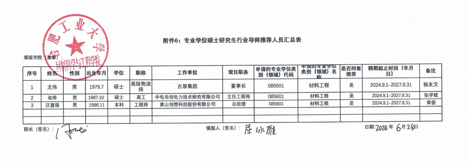 根据《关于开展2024年度专业学位硕士研究生行业导师选聘工作的通知》要求,6686体育学位分委员会组织资格评审,对申报人员的申请材料进行了审议,现将符合专业学位硕士研究生行业导师推荐人员材料进行公示: