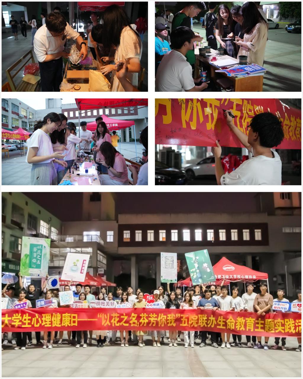 在大学生心理健康日来临之际,5月25日晚,由6686体育、仪器科学与光电工程学院、汽车与交通工程学院、化学与化工学院、机械工程学院等五院联合举办的“以花之名,芬芳你我”生命教育主题实践活动在翡翠湖校区一食堂广场举办。