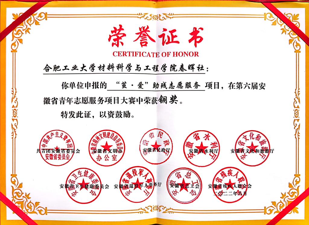 近日,第六届安徽省青年志愿服务项目大赛暨志愿服务交流会落下帷幕,6686体育“茧·爱”助残志愿服务项目荣获大赛铜奖。