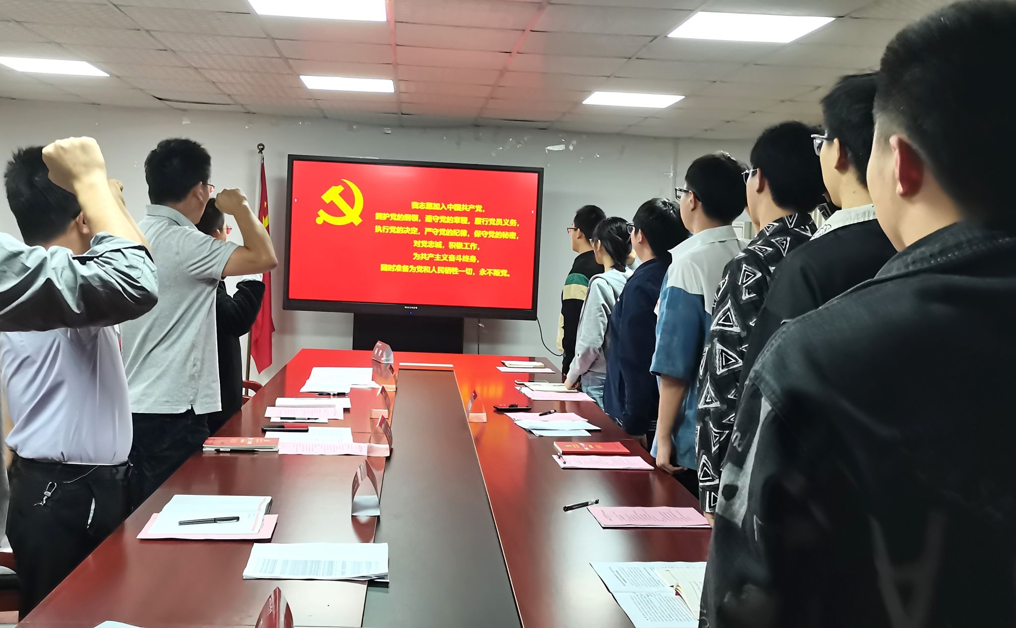 与会师生围绕学业发展、职业规划、考研就业等进行研讨交流。同学们积极提问,老师们耐心解答,同学们纷纷表示受益匪浅。同时,与会学生党员还就学院专业教学计划、实验室建设、学科发展方面提出了建议。最后,全体师生党员一起重温了入党誓词。