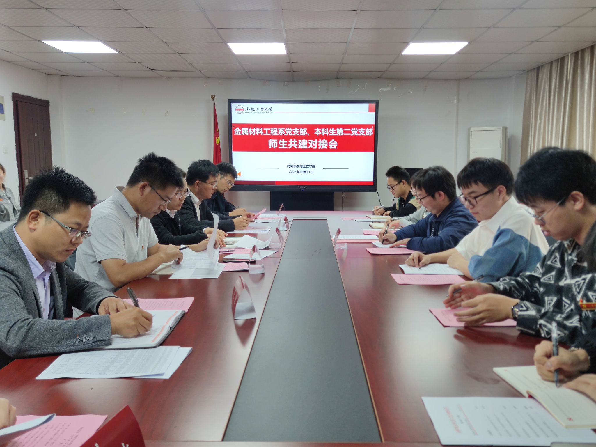 10月11日下午,6686体育在材料楼三楼党员之家开展师生党支部共建交流活动。安徽省“样板支部”本科生第二党支部和金属材料工程系党支部师生党员参加本次共建交流活动。